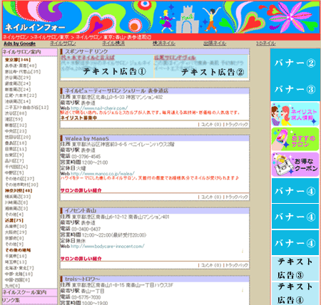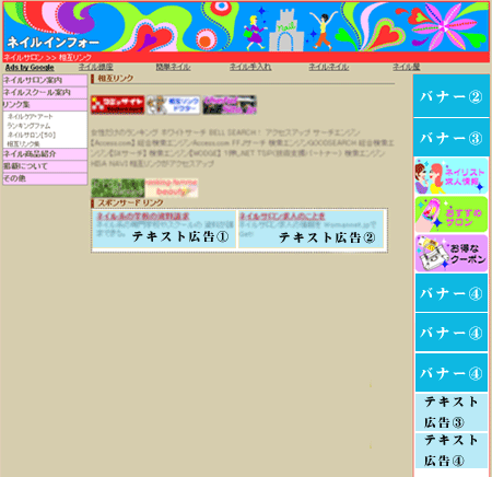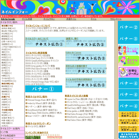 テキスト広告はネイルインフォー全ページ(約1000ページ)から